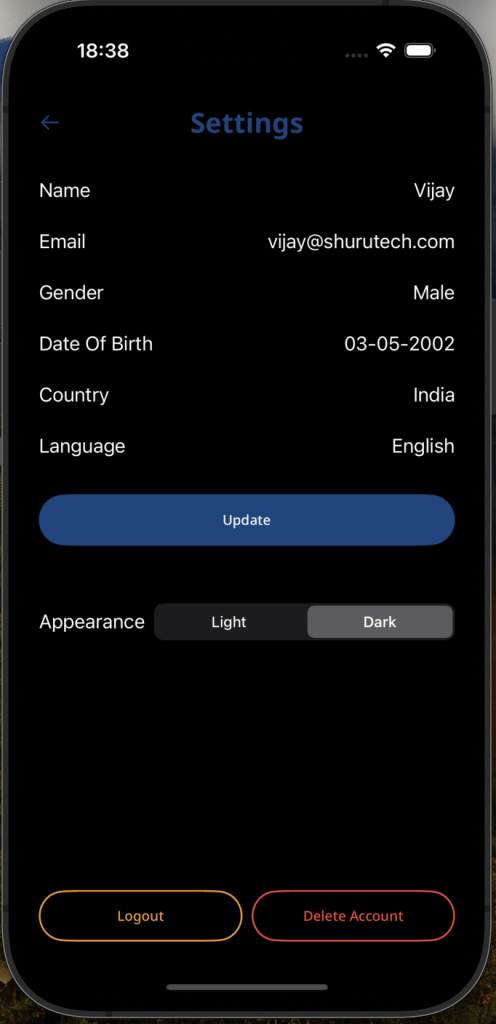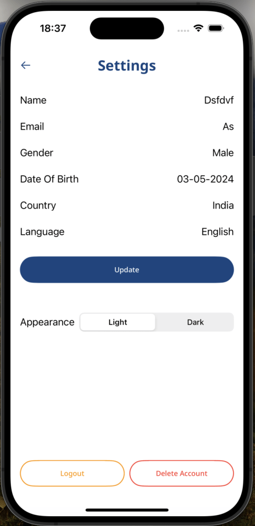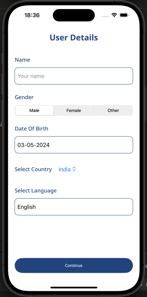 User Details Screen: We’ve added a user details screen where users can provide information such as name, country, date of birth, gender, and language. These details can be updated from the settings screen, allowing for a more personalized app experience.